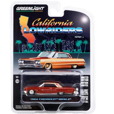 Brand new 1/64 scale diecast car model of 1964 Chevrolet Impala Copper Brown Metallic with Graphics “California Lowriders” Series 2 die cast model car by Greenlight.Limited edition.Brand new box.Real rubber tires.True-to-scale detail.Authentic decoration.Detailed interior, exterior.Comes in a blister pack.Officially licensed product.Custom themed packaging.Die-cast metal body and chassis.Manufacturer’s original unopened packaging.Dimensions approximately L-3.25 inches long.