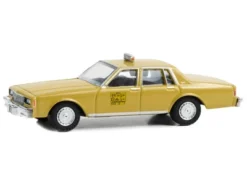 Brand new 1/64 scale diecast car model of 1981 Chevrolet Impala Taxi Yellow “Coming to America” (1988) Movie “Hollywood Series” Release 39 die cast model car by Greenlight.Limited edition.Brand new box.Real rubber tires.True-to-scale detail.Authentic decoration.Detailed interior, exterior.Comes in a blister pack.Officially licensed product.Custom themed packaging.Die-cast metal body and chassis.Dimensions approximately L-3 inches long.Manufacturer’s original unopened packaging.