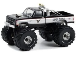 Brand new 1/64 scale diecast car model of 1984 Chevrolet K-30 Silverado Monster Truck Black and Silver “Lone Eagle” “Kings of Crunch” Series 12 die cast model car by Greenlight.Limited edition.Brand new box.Chrome accents.Detailed exterior.Real rubber tires.True-to-scale detail.Die-cast metal body.Authentic decoration.Comes in a blister pack.Officially licensed product.Manufacturer’s original unopened packaging.Dimensions approximately L-3.25 inches long.