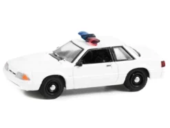 Brand new 1/64 scale diecast car model of 1987-1993 Ford Mustang SSP White Police Car with Light Bar “Hot Pursuit” “Hobby Exclusive” Series die cast model car by Greenlight.Limited edition.Brand new box.Detailed exterior.Real rubber tires.True-to-scale detail.Authentic decoration.Officially licensed product.Die-cast metal body and chassis.Manufacturer’s original unopened packaging.Dimensions approximately L-2.625 inches long.
