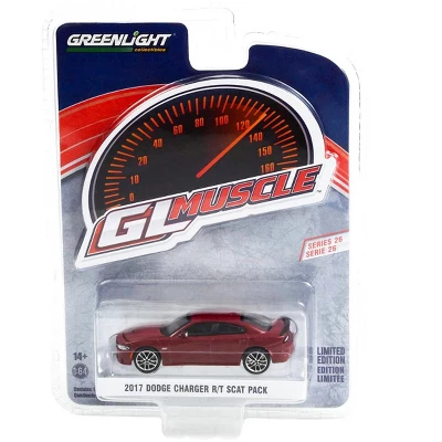 Brand new 1/64 scale diecast car model of 2017 Dodge Charger R/T Scat Pack Octane Red Metallic “Greenlight Muscle” Series 26 die cast model car by Greenlight.Limited edition.Brand new box.Chrome accents.Real rubber tires.True-to-scale detail.Detailed exterior, interior.Comes in a blister pack.Officially licensed product.Die-cast metal body and chassis.Dimensions approximately L-3 inches long.Manufacturer’s original unopened packaging.