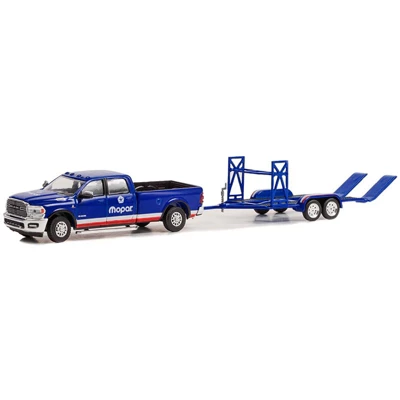 Brand new 1/64 scale diecast car model of 2020 Ram 2500 Laramie Pickup Truck Blue with Red and White Stripes “Mopar” and Tandem Car Trailer “Hitch & Tow” Series 25 die cast model car by Greenlight.Limited edition.Brand new box.Chrome accents.Real rubber tires.Detailed exteriors.True-to-scale detail.Comes in a blister pack.Officially licensed product.Die-cast metal body and chassis.Perfect for dioramas and window boxes.Manufacturer’s original unopened packaging.Pickup Truck is approximately L-4 inches long.Tandem Trailer is approximately L-4 inches long.Approximate overall dimension is L-8 inches long.Comes with corkscrew jack for stand-alone display.