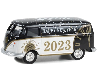 Brand new 1/64 scale diecast model of Volkswagen Type 2 Panel Van “Happy New Year 2023” Black and White “Hobby Exclusive” Series die cast model by Greenlight.Limited edition.Brand new box.Chrome accents.Real rubber tires.True-to-scale detail.Authentic decoration.Detailed interior, exterior.Comes in a blister pack.Officially licensed product.Die-cast metal body and chassis.Manufacturer’s original unopened packaging.Dimensions approximately: L-2.5 inches long.